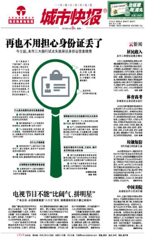 《城市快报》于2004年3月1日创刊。由《天津日报》报业集团主办,《城市快报》是一份以高品质、城市化、全新闻为办报宗旨的报纸,以城市化媒体为自身定位,每天8版完整的新闻版面,聚焦城市,互动社区,捕捉城市每一个角落的感人故事,关注人的生活形态。随着《城市快报》的出品,读者将能如愿地看到丰富、华美的8块大版的娱乐、体育报道等 。